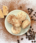 Experience the classic taste of tiramisu in our delicate macarons. Filled with smooth tiramisu-flavoured buttercream and finished with a light dusting of cocoa, each bite is a perfect balance of coffee, cream, and sweetness. A true indulgence!